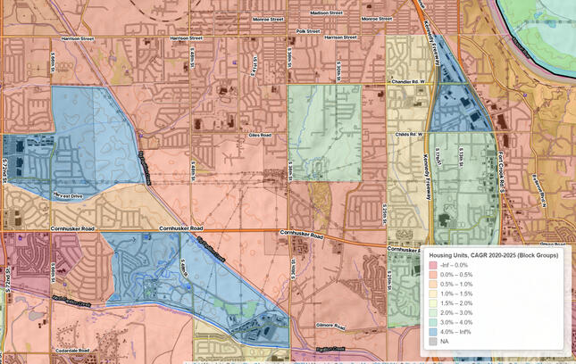 housing unit growth 2020-2025, for multiple geographies.